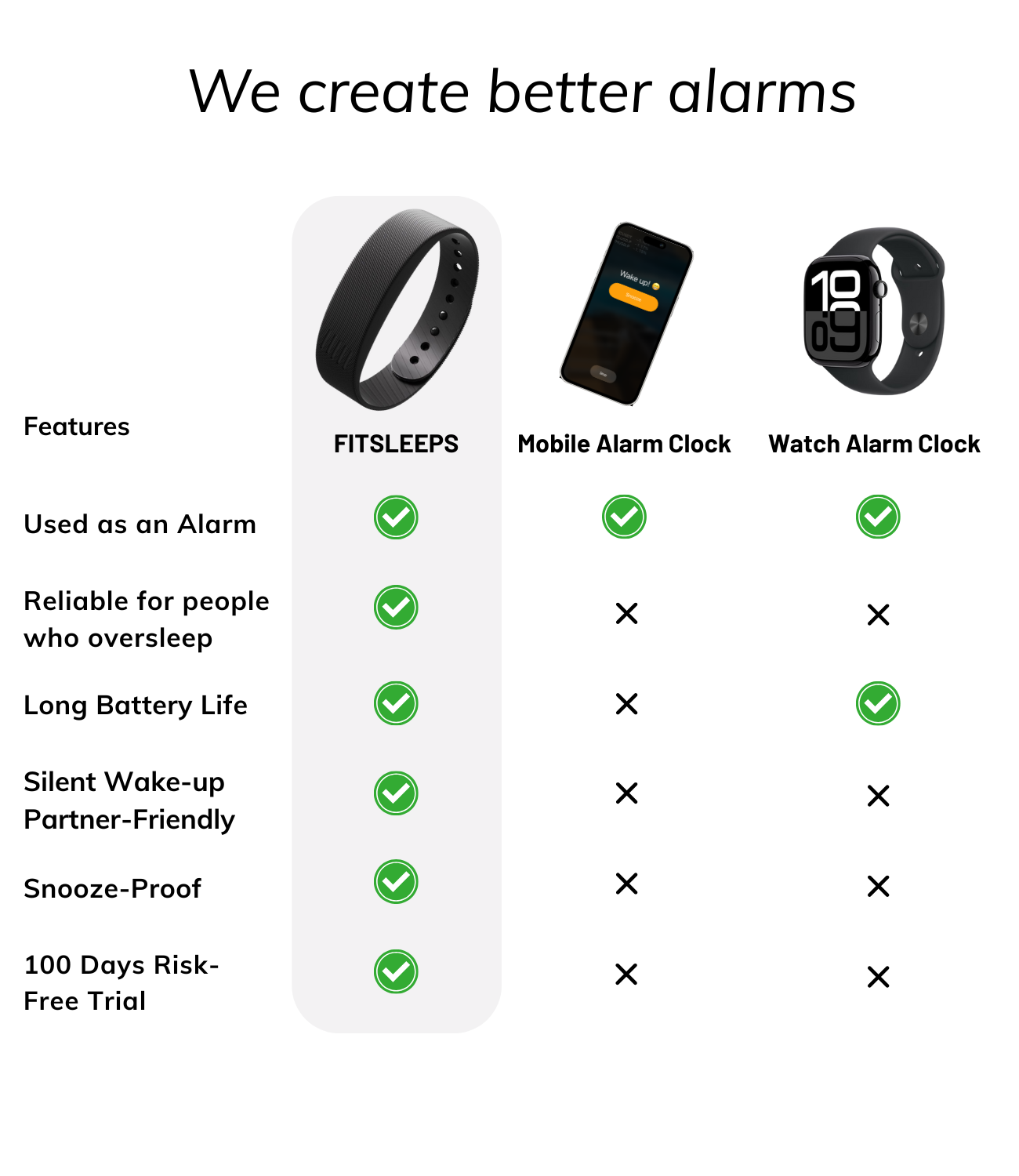 The vibration intensity of ourFitsleeps Pro Alarm is now designed to gradually increase from low to high, providing a gentle yet effective wake-up experience for every sleeper. This new version ensures an optimal balance that works well for all users.