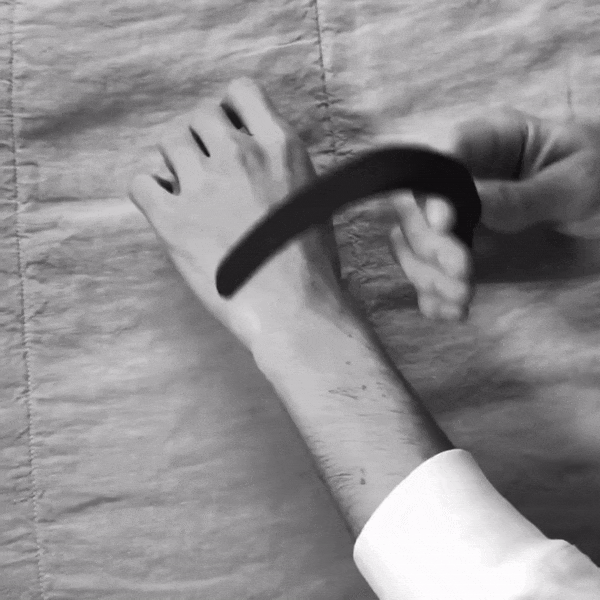 You put the wristband on before you go to sleep and easily set the alarm clock. When the alarm clock goes off, you turn it off and put the wristband back on your nightstand.