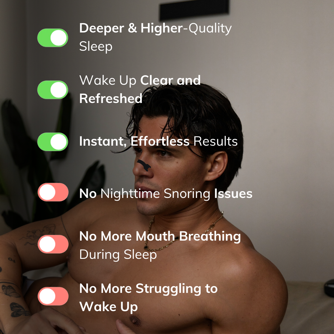 This powerful combination — FitSleeps Mouth Tape + Nasal Strips — is designed to optimize your nighttime breathing. By encouraging nasal airflow and proper jaw position, it helps you reduce snoring, fall asleep faster, and stay in restorative sleep longer.
